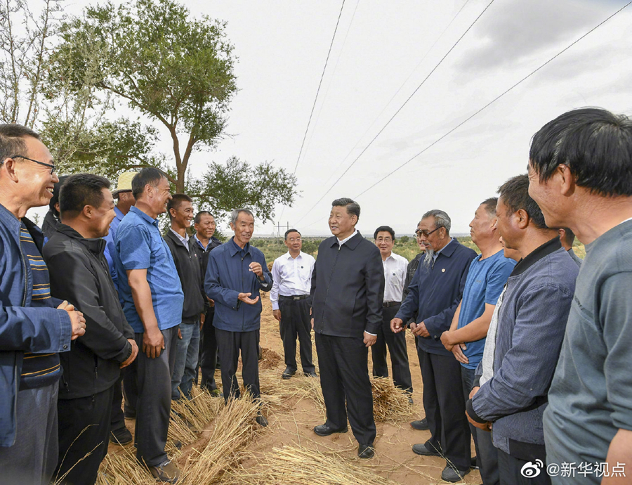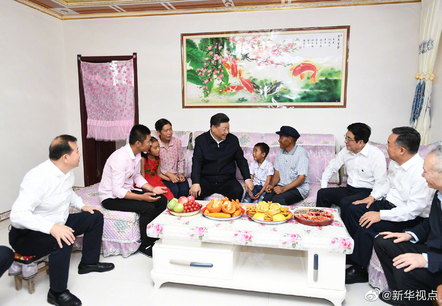 21日,习近平总书记继续在甘肃考察。上午,习近平来到武威市古浪县黄花滩生态移民区富民新村,了解易地搬迁群众生产生活及脱贫致富情况。随后,他乘车前往八步沙林场,实地察看当地治沙造林、生态保护等情况。