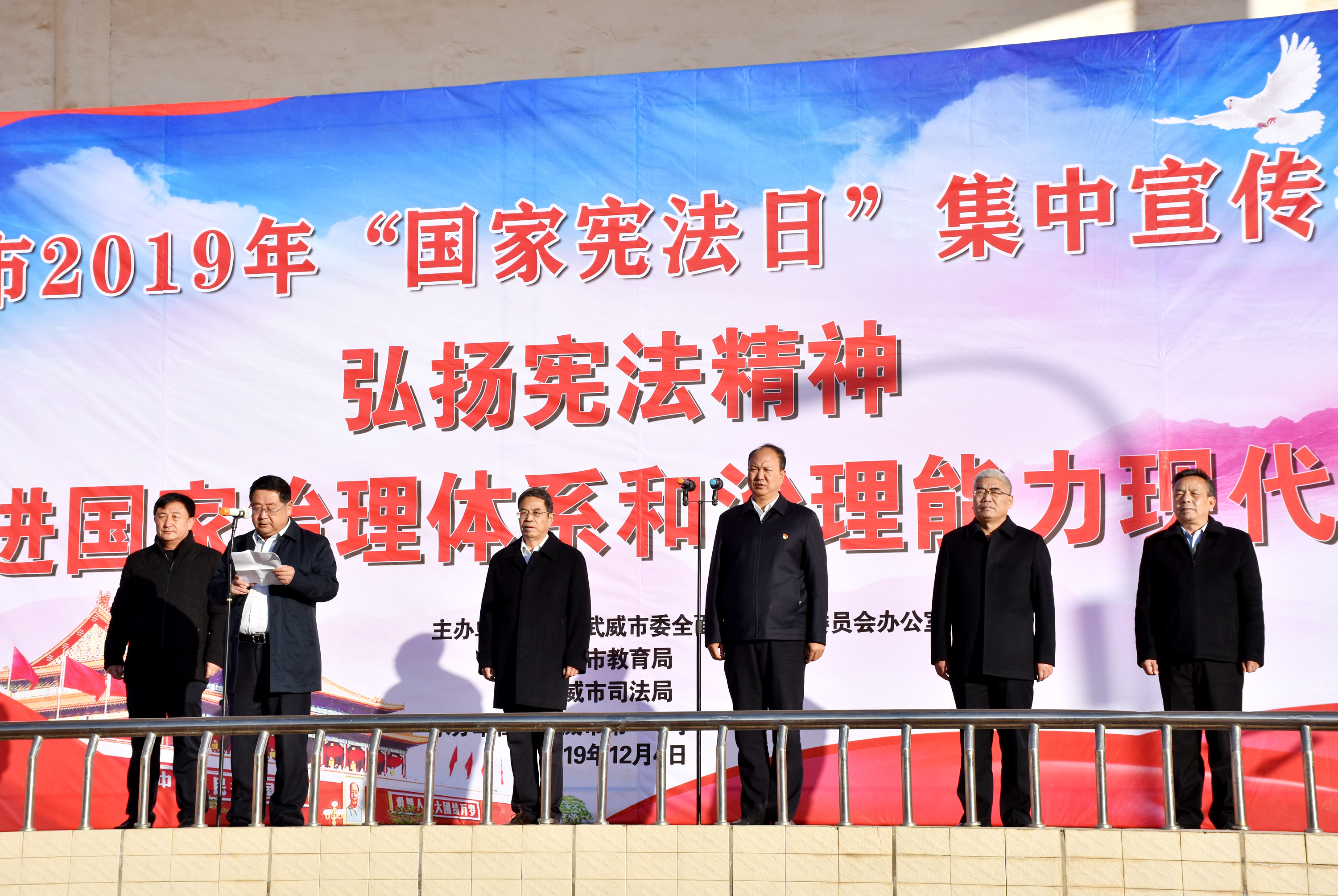 为深入学习贯彻党的十九大和十九届四中全会精神,全面贯彻落实中央关于学习宣传和推进宪法实施的决策部署,进一步营造尊崇宪法、学习宪法、遵守宪法、维护宪法、运用宪法的浓厚氛围,12月4日,武威市举办主题为“弘扬宪法精神 推进国家治理体系和治理能力现代化”的2019年“国家宪法日”集中宣传活动。
