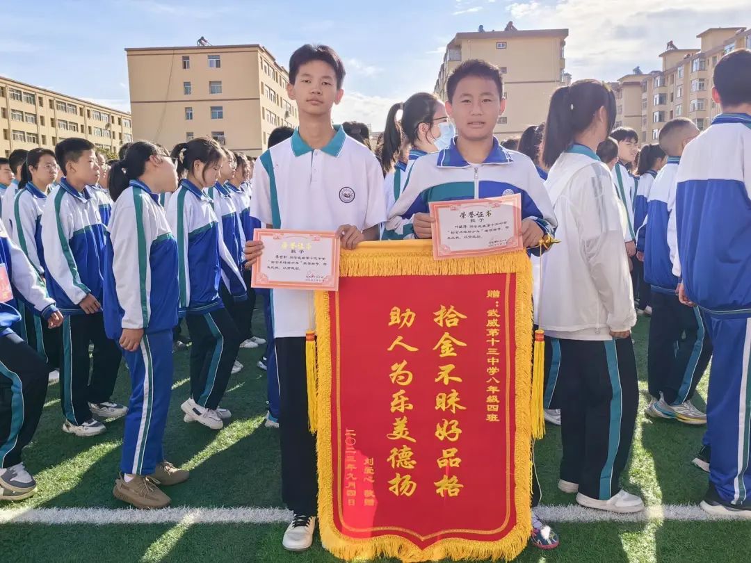 拾金不昧,是中华民族传统美德,也是一个人高尚品德的体现,更是社会责任感的具体体现。“双节”前夕,武威第十三中学收到了一面锦旗,高度赞扬了武威第十三中学师生良好的道德品质和精神风貌。