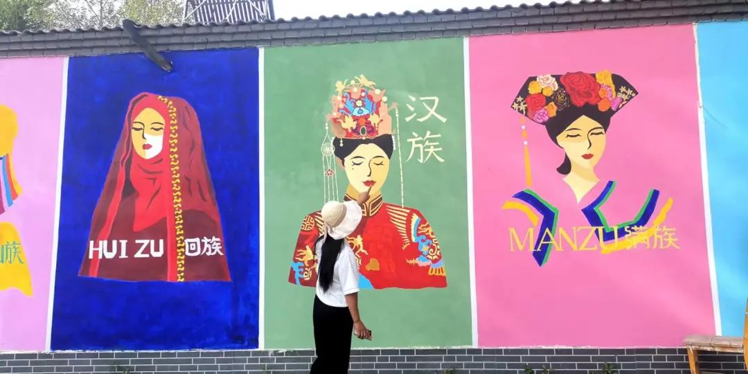 绘制民族团结墙画