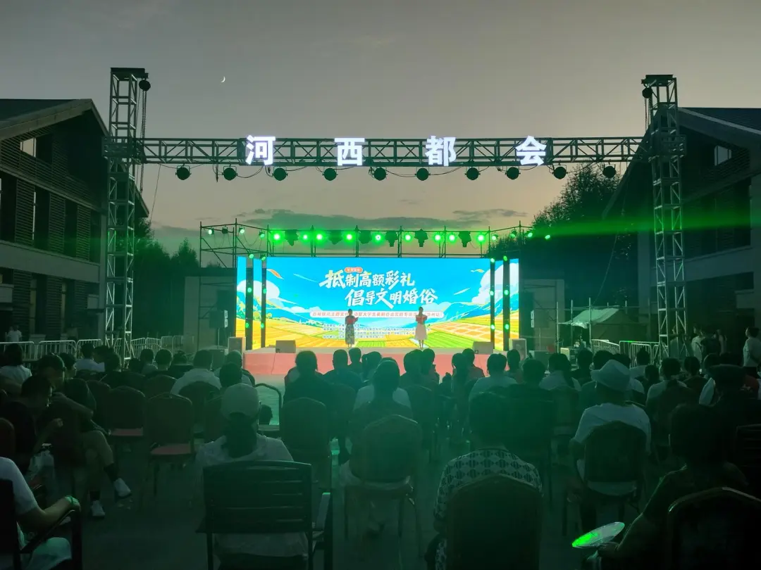 近日,“抵制高额彩礼 倡导文明婚俗”百城联动主题宣传活动走进凉州区,在河西都会民俗节庆广场上演了一场主题鲜明、生动有趣的文艺表演。