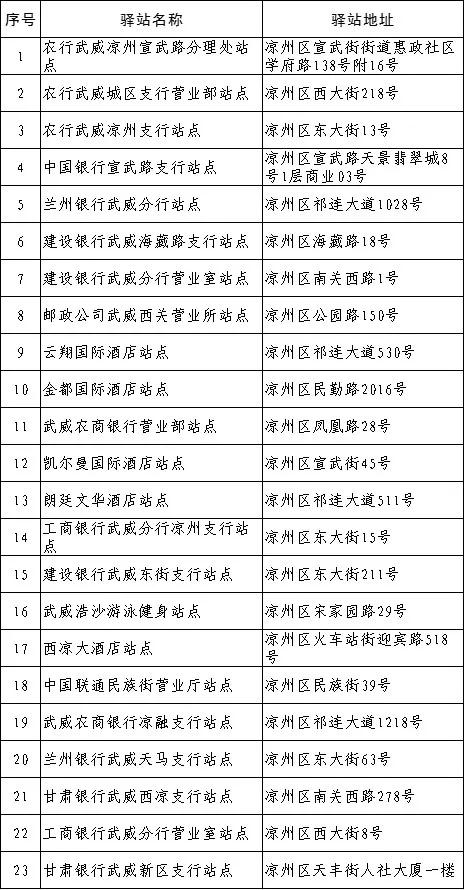 户外劳动者驿站让城市更有温度,武威市“户外劳动者驿站”一览表。