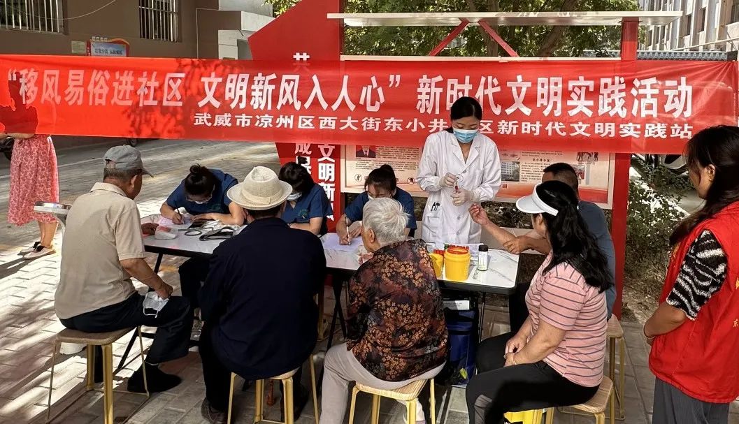 近年来,西大街东小井社区着眼“凝聚群众、引导群众,以文化人、成风化俗”目标,持续拓展新时代文明实践工作,创新开展“五色”文明实践活动,通过“红色引领”“蓝色网格”“橙色关爱”“金色品牌”“绿色宜居”志愿服务,打通联系群众“最后一米”,实现服务群众“面对面”、破解难题“零距离”,为建设“温暖如春·情真意切”的“温情东小井”增添了新的活力。