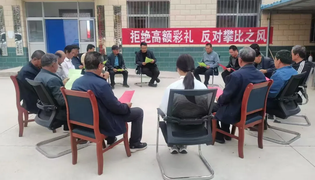 该县坚持线上+线下”“正面引导+反面警示相结合,在村(社区)党群服务中心、文化广场等场所悬挂横幅260余条,张贴倡议书1500多份;利用村村响广播、流动宣传车循环播放《抵制高额彩礼倡议》;村组组建移风易俗宣讲队,通过炕头会、田间会开展微宣讲186余场。编排《月缘》《新结婚时代》《婚姻不是用金钱衡量》等微电影、快板、三句半等群众喜闻乐见的节目,以家常话、身边事引导群众转变观念。
